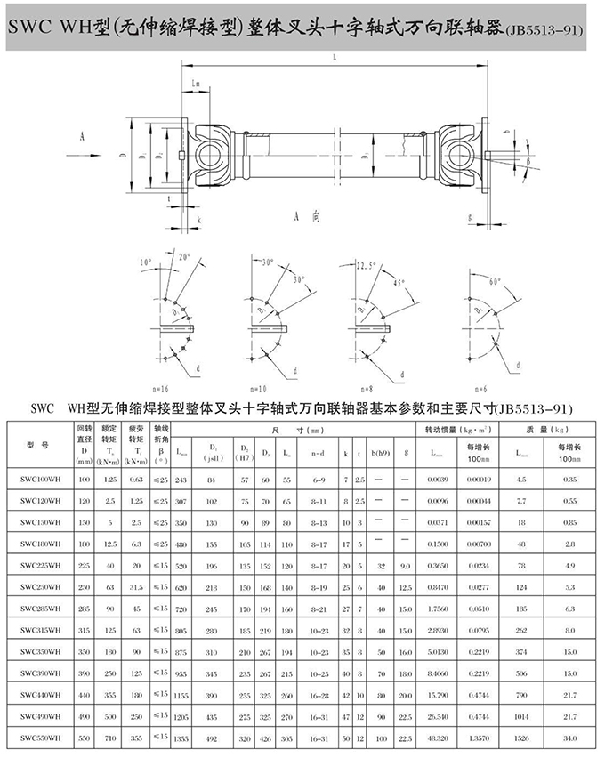 瑞安市寶德隆機械配件有限公司提供SWC WH型(無伸縮焊接型)整體叉頭十字軸式萬向聯軸器具有拆裝方便,快速安裝等特點,廣泛用于連接/固定輪轂孔和零件的軸,例如齒輪,錐齒輪,鏈輪,葉輪,凸輪,皮帶輪和飛輪等軸的聯結固定,咨詢電話:18906872378