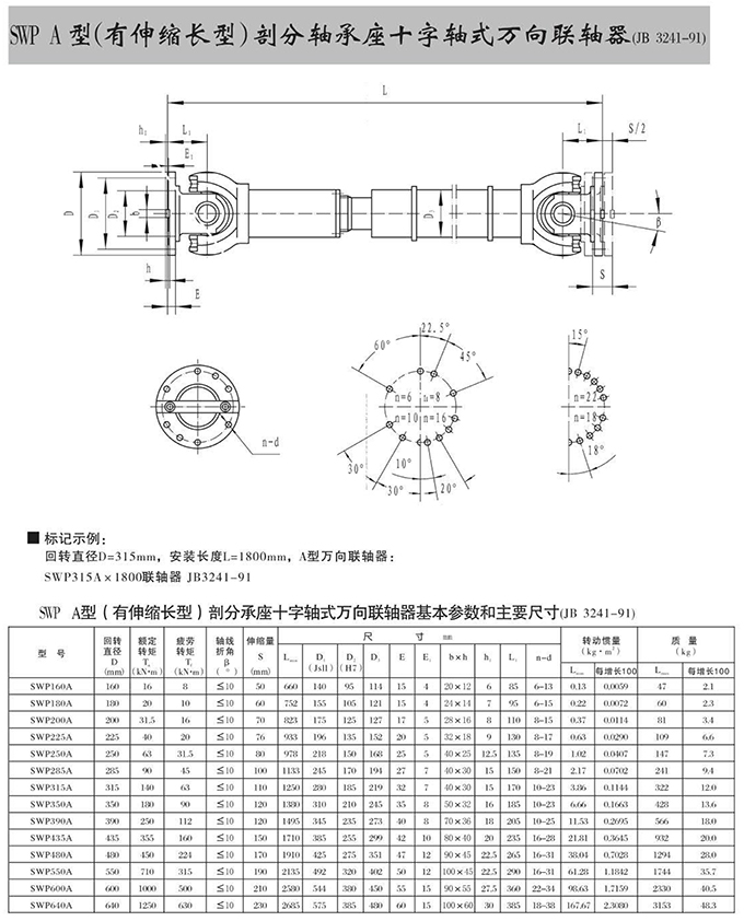 SWP A型(有伸縮長型)部分軸承座十字軸式萬向聯(lián)軸器